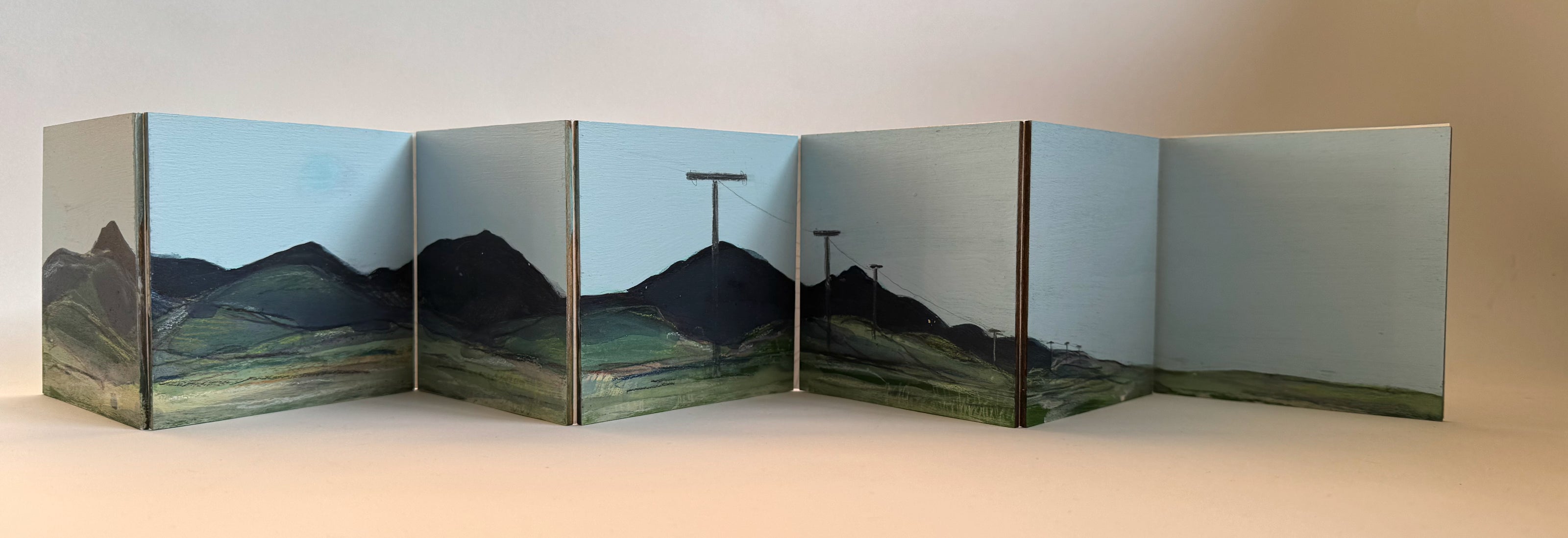 Pen Llan, oil on board on paper, artist book, 10x70cm SOLD
